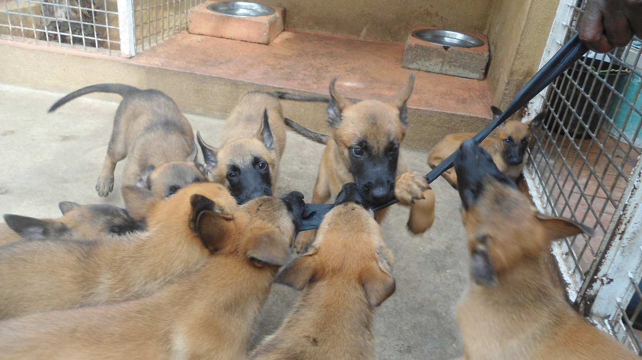 O treinamento começa cedo: ninhada de Pastor Belga Malinois com 6 semanas; quase todos já mordem o "rabicho" !!!